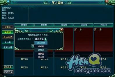 進入報名介面可選擇主角或散修中的任意一名角色進行報名。報名後即可參加單人競技場競賽。每個玩家只能一名角色報名XD。