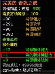 另外一個屬性是很多人認為是傳說中的屬性,是騙人的。初初小編也是這樣認為,但最後在小編努力嘗試之下,終於洗出來了。那就是傳說中的機動力。使用初級洗煉石很難洗出兵的額外機動力,我嘗試了N遍,結果徒勞無功。然後小編嘗試使用中級洗練石,哈哈~皇天不負有心人真的給洗出來了。